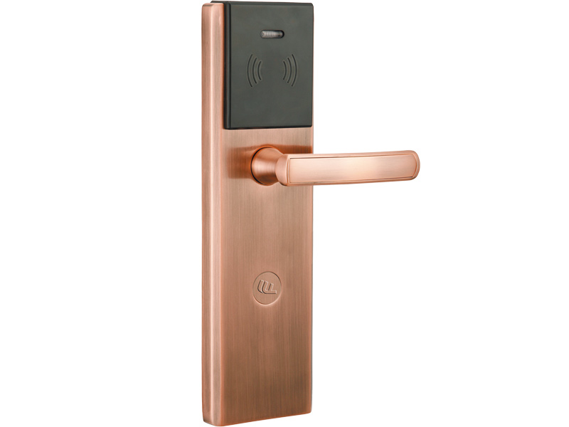 门锁实现多级管理:总控卡、楼栋卡、多楼层服务员卡、楼层服务员卡、单个房间开门卡。软件上实现客人卡后客取消前客的设计,并增加了客户自选功能,客户可根据需要自选是否开启反锁、假锁报警、开门时门锁有音乐声提示等功能,解决了原来只有通过线路板预留功能实现造成客户不能自行更改的弊端。