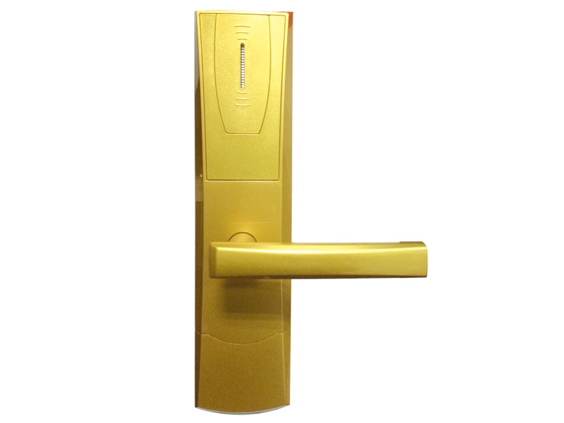 门锁实现多级管理:总控卡、楼栋卡、多楼层服务员卡、楼层服务员卡、单个房间开门卡。软件上实现客人卡后客取消前客的设计,并增加了客户自选功能,客户可根据需要自选是否开启反锁、假锁报警、开门时门锁有音乐声提示等功能,解决了原来只有通过线路板预留功能实现造成客户不能自行更改的弊端。